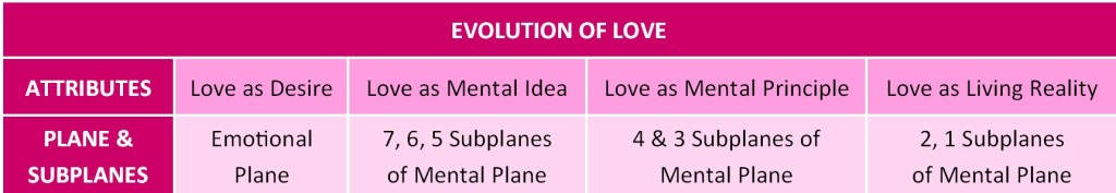 Regarding our minds they are used more to objectively understand others and discern why they feel or act in certain ways. Through wisdom and right action we are even better equipped to help others feel more loved and become more loving themselves. All of this is valuable, but at this level mental effort is still required and we have not yet reached the spontaneous outflow of love Bailey is speaking of. Yes we are at least making more of a real effort to love. But, eventually, I believe as we get to the 1st and 2nd subplanes of the Mental Plane we don’t even have to think about what love is, or how to love others. We just love. At last we become that spontaneous outflow and as we get closer to the Intuitional or Buddhic Plane where we become love itself.