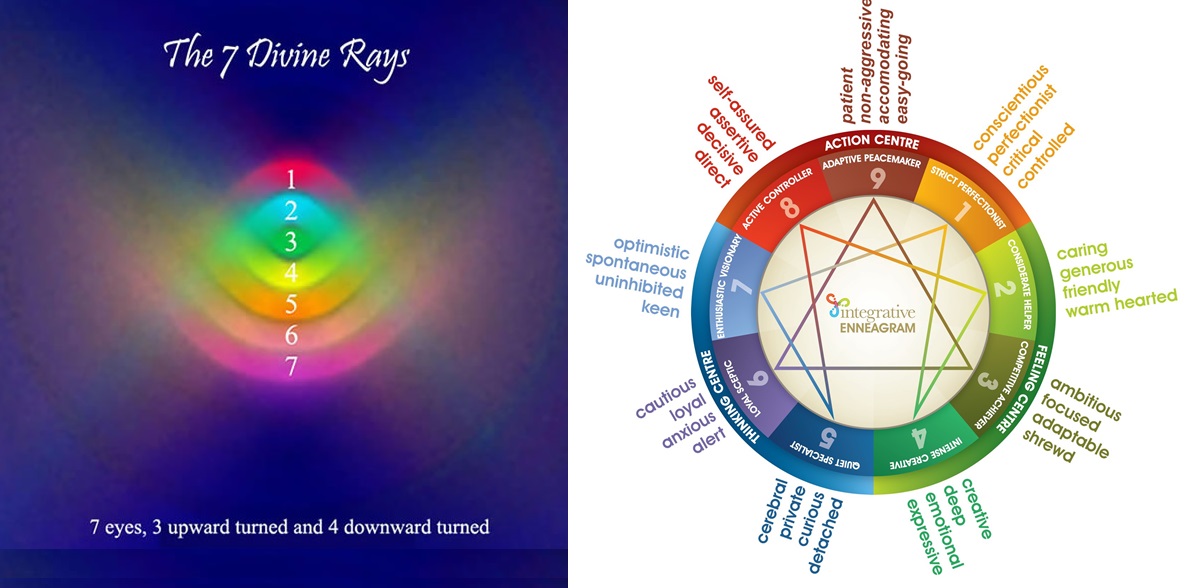 - Both are based on sacred numerology — the Enneagram on the number 9, the rays on the number 7.